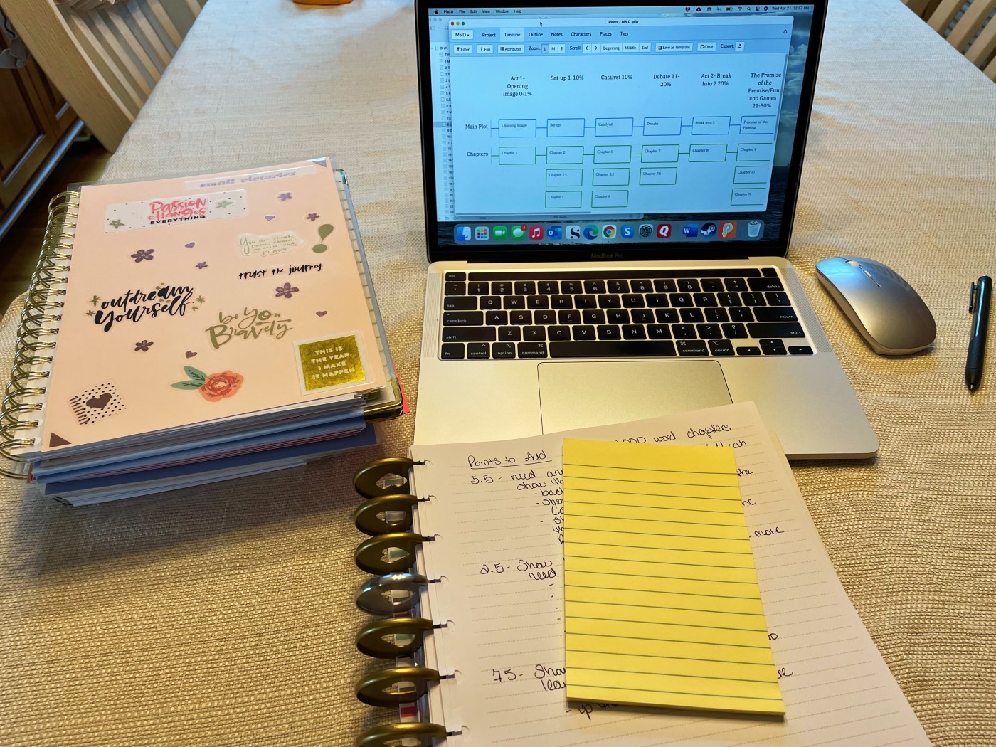 This week I am going to finish making notes in the draft and start rewrites on the story. For this manuscript, most of the work that needs to happen revolves around deepening the relationships and adding background about the characters. The major events won’t be changing and neither will the timing of things for the most part. I’m adding any new chapters that need to be written in Plottr as 5.5 or 8.5 to let myself know it’s a chapter that hasn’t been written yet and it needs to be connected to the story in that place. I haven’t tried that as part of my process before and I’m excited to see how it works.
