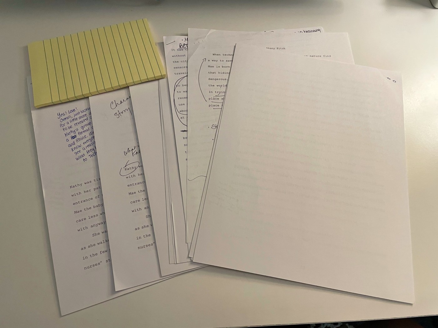 Contemplating the feedback I received would lead to two things. First, it would lead to my mind wandering down the paths that the questions or comments brought up about the story. I’d let myself question whether a character needed to have more time front and center of the story or if there was a moment where they needed to be involved in a scene they previously hadn’t been to showcase their stakes in the story more. I’d wonder about what was missing in my world-building and where I’d missed opportunities for my characters to show more about what they were seeing and experiencing as they went along. I would also make A LOT of notes about where characters needed to interact either more or differently than they had been before to show what their relationship and/or conflict was with each other. The second thing contemplating the feedback might lead to was the need to go back to my trusted readers with follow-up questions. Now, these follow-up questions were NEVER along the lines of “why didn’t you like it?” because NO, that is not what critical feedback is about. Critical feedback should help a writer dig deeper into the relationships, action, and world that they’ve created in a story and help them to understand where moments happen on the page that the information needed to do that well didn’t make it onto the page and is still stuck in the writer’s mind. Some of my follow-up questions would sound like, “I’m wondering what made you see this character and that character in this way?” or “I’m wondering what details struck you most about this scene/thing/etc that lead to this picture.” Questions that bring out more information about what lead a reader to feel/think/believe one way about the story help me as the writer to see what/how the details/information/scenes I created struck the reader as they were going along the story.