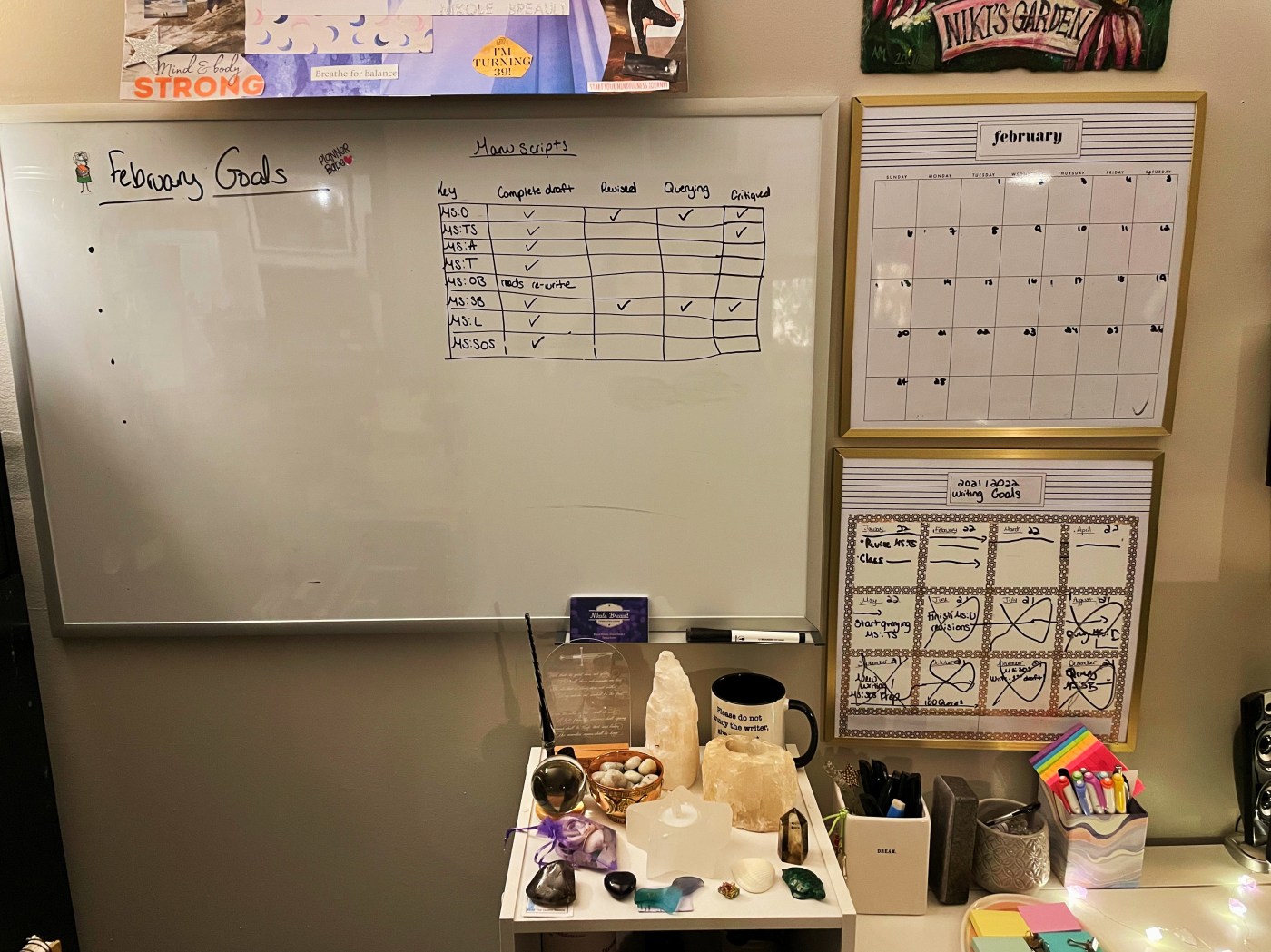 I’m also simultaneously in this step of the process deciding what tools to use while I achieve these goals. I love planners and find a lot of motivation and accountability in having my goals written down. I also have a Kanban Board that I use to track what I have to do, am doing, and have done. I’ve also got a wall with a dry erase board for notes and overall lists, a monthly dry erase board, and a yearly dry erase board. I’m a very visual person (my teacher side also particularly loves these tools) so surrounding myself with reminders of what I’m working on and what it’s all adding up to is hugely helpful to me. Deciding which tools work and which don’t is a really helpful way to work on goals. I used to have an electronic Kanban board, but found it didn’t work for me. I also tried putting my monthly goals into my Google calendar, but that is a tool we use heavily for my family and putting my writing work in there was to overwhelming and things got lost in the shuffle. Still, I double-check with myself that the tools I’ve been using are still useful to me or if I find I need to add or drop a tool. I like to have my tools set before I start doing the work of making my goals happen because I find I’m not distracted by my tools when I’m working. Once all of this is done, it’s time to move onto the next step in the process.