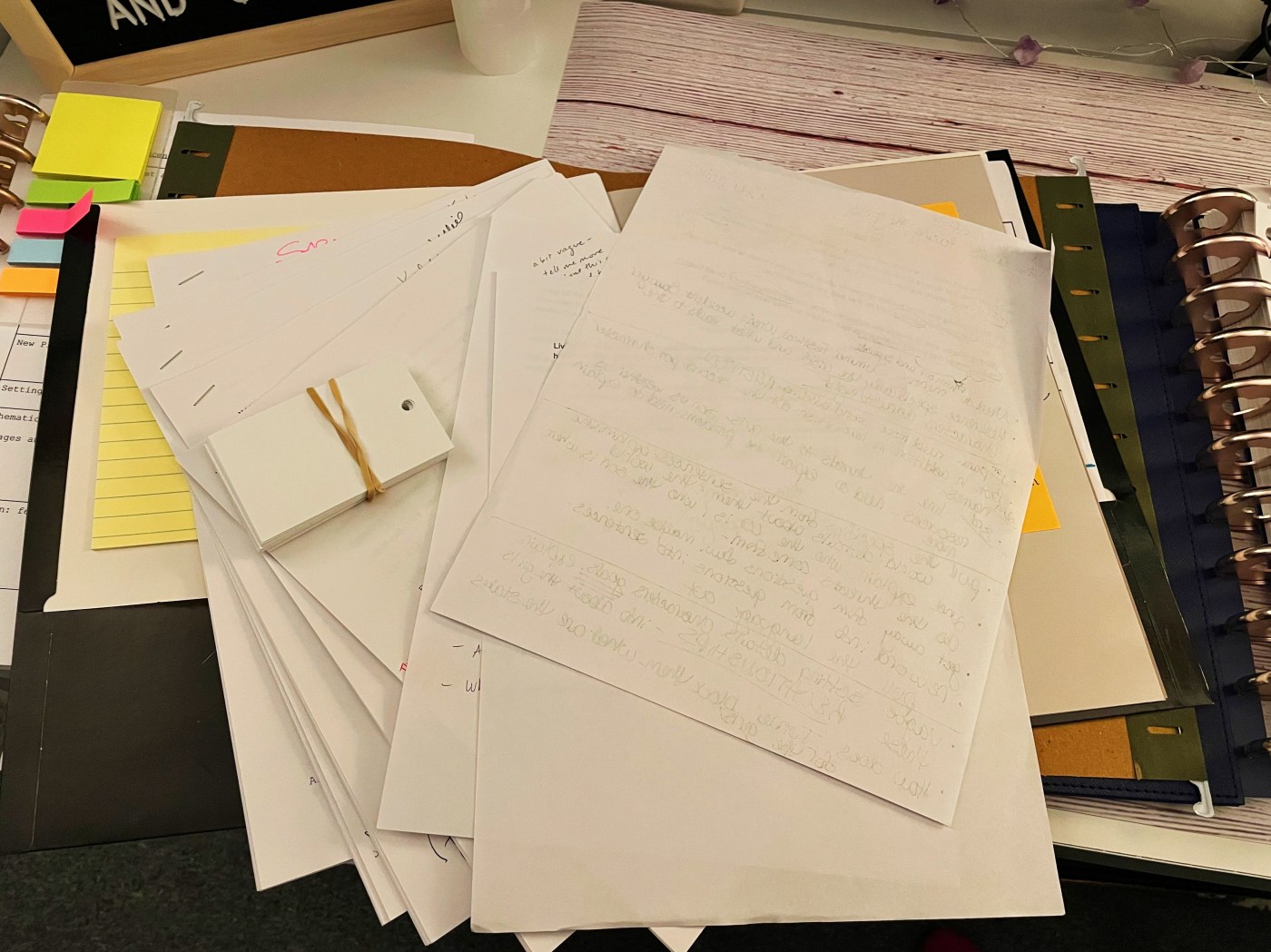 As I was working last week, I was thinking about the feedback I’d received on the pieces of the story I’d shared with others so far. I’d received a lot of feedback about the moment I’d just revised in the story and even more feedback on the first sister. I also remembered that I’d gotten feedback on the second sister and that was what I wanted to get my hands on most, now that she’d moved to taking turns in the narrator’s seat. Some of the feedback I had was from critique sessions years ago when my critique group was meeting in person and the most recent feedback was from a course I completed online earlier this year. I pulled together all of the various paper copies with notes from where they’d scattered themselves in my files and pulled all of my electronic files together in a folder on my computer. That was the point where I needed to make a decision on what the next step in my process was going to be because when I’d done this in the past, I’d never decided on what the next step should look like. Sometimes when I’d revise, I’d dig through when I came to a moment I wanted to utilize a piece of feedback and other times I’d go to points in the chapters and make notes for later. This time I decided to create a document and make a list of notes about all of the feedback I’d received, with line items for different characters, relationships, moments, etc. I wrote down small summaries of questions people had thrown out that made me think that I wanted to explore as I revised scenes and wonderings people had that made me pause and reconstruct a scene. It felt so good to get it all in one place and I’m excited to see how it serves me as I continue through this revision.